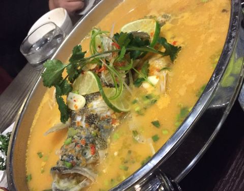 位于第一八佰伴7楼的明太谷泰国休闲餐厅,环境很好,服务员很热情,服务周到。推荐冬阴功汤、香茅烤鱼、虾酱空心菜,泰式菜味道很正,凤梨饭也不错。