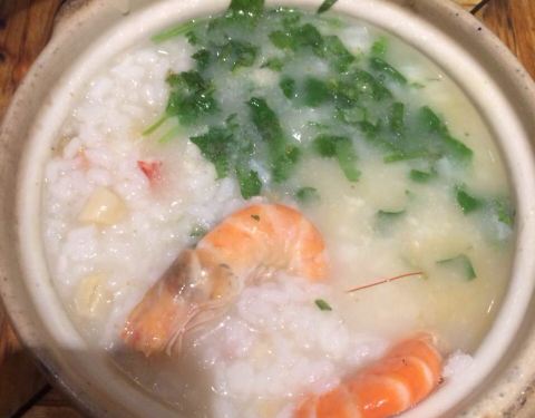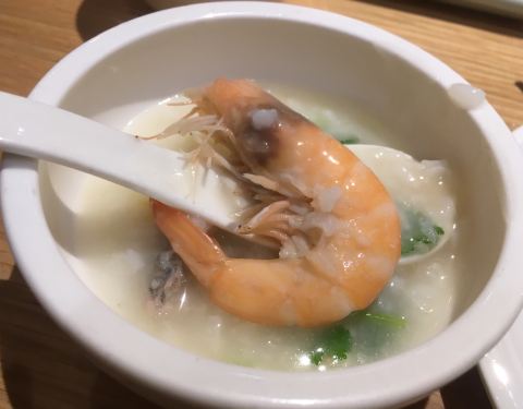 好久没喝到广东的粥了,特意选了这家店。广东人喜欢夜宵或者早茶喝粥,我们只有晚餐有时间。 点了招牌的鲍鱼干贝基围虾粥,另外配了卤虾、卤鹅和春菜。 熬粥需要点时间,粥煲得确实不错,里面的料也不少,确实很...