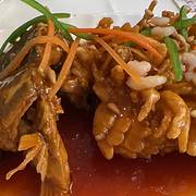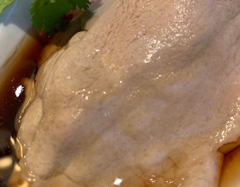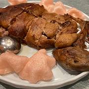 今天最受欢迎的是熏鱼,烤鸭,油爆虾和葵花斩肉。熏鱼用鲳鱼做,比青鱼刺少,而且没有鱼腥气,鲜甜的口感,边上也能吃下不用吐刺,很赞!