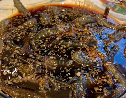 油爆河虾:本帮味道的鲜甜的油爆虾,河虾做的,比基围虾好吃很多,肉是活的,外壳酥脆,吸透了酱汁,特别上海,喜欢!