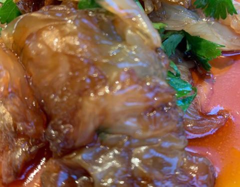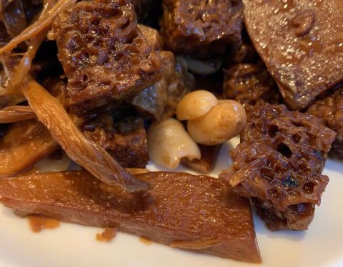 拆烩鱼头:选的红汤烧法,因为大多数人不会吃辣,所以就关照了不要放辣,这个菜本身应该是有一点辣味才更入味更好吃。鱼头本身的选材非常新鲜,鱼肉吃起来几乎没刺,对我这种不会吃鱼的非常友好~