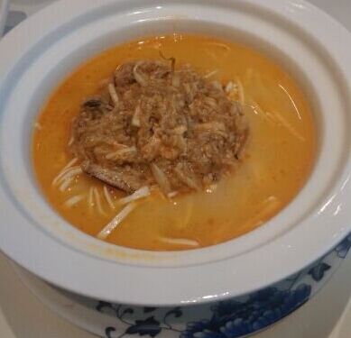黄鱼羹:个人很喜欢,因为今天请的都是长辈,不能吃太油的大汤,所以选了皮蛋黄鱼做主材的汤。