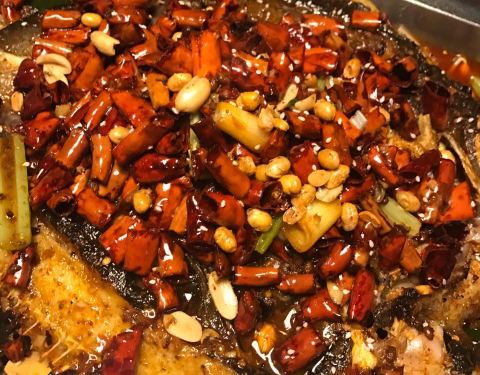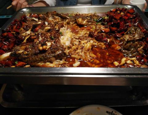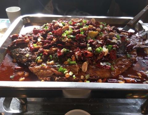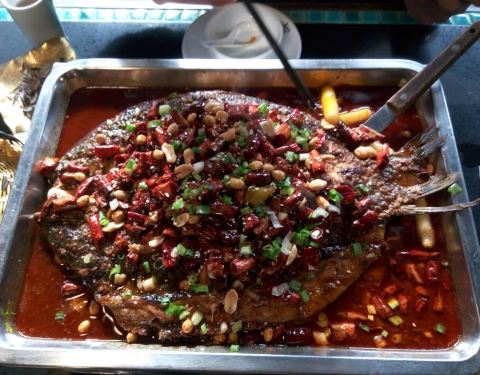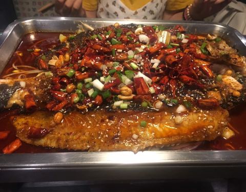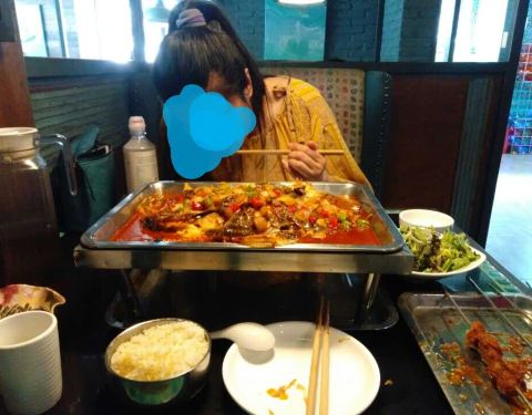 鱼刺很少,就餐环境还不错,点的蒜香的,太辣的吃不来,蒜香是微辣的,也挺不错,烤鱼上有一些洋葱和...