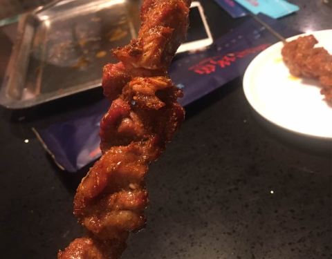 羊肉串味道不错。很大,用大锅烤羊肉串有特色,清江鱼肉质比较厚,新鲜。