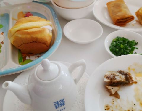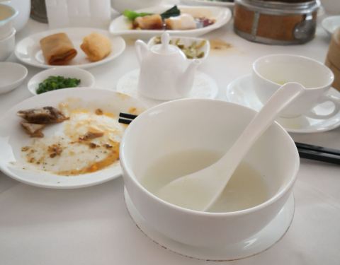 青岛早茶本身就没有几个店,选择性不大,其中好一点的店也就2-3家,海景花园整体来说还是比较上档次的。首先周边环境不错,靠着海边,吃饱了过了马路就可以溜达溜达。周末预约了6个人的大桌,8点左右来的时候没有2-3桌客人,点餐后稍微等个5,6分钟,先是小米粥等普通的粥品上来了,然后慢慢的白灼青菜,各种小点上来,最后鱼片粥约20多分钟才上。味道整体来说还行,不是太出彩,特别是秘制牛肉,简直和残羹剩饭一样的汤水,看着就没有食欲,直接没有动筷子,其他的还行。服务还是不错的,随叫随到,相对应五星级酒店来说,这个早茶有待于提高品质。