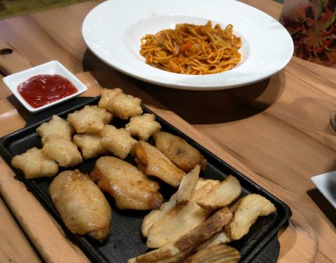 ...,很可口,餐厅的环境也很不错,很适合一起聊聊天,喝个饮料,一起坐着,看着人来人往,还是蛮惬意的