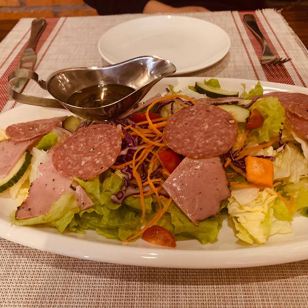 在青岛准备换个口味,于是选择了这家酒店门口的德国餐吧。本来是奔着烤猪肘去的,但是因为餐厅11点才开业,我们中午去的时候猪肘还没有准备好,因此就选了柏斯图肉肠汇,也就是香肠拼盘,外加半打鸡翅和一份凉菜...
