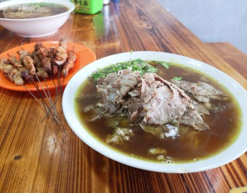 朋友带着来的老四方拉面,之前听说过鑫明明也没有尝试过,其实都在这附近。 【位置】就在四方糖球会附近,我们把车停在大糖球广场的位置走过去的,店的附近不是太好停车。 【环境】算是老牌的苍蝇馆了,据说是四方人儿时的记忆吧门头不算大,里面倒是很宽敞。就是普通街边馆的装修,看起来有点脏脏的,总体还能接受。 【口味】面就是招牌的牛肉拉面,由于没有吃过,本来是想点15元的,后来朋友说价格不一样就是肉的分量不一样,乖乖的听劝点了10元的。 超级大的一碗面,要拿着小票过去现做,可以要求粗面或者细面,不要香菜什么的也要在窗口告知。小烤肉2元一串,油水挺大,但是味道不错。 总的来说性价比很高,四方区的物价不算贵,一个人花20块钱吃的饱饱的