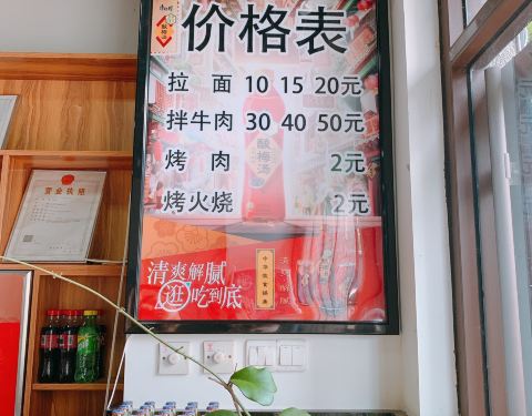 朋友推荐的老四方拉面馆,店就一种拉面,价格从十块到20块,不等量还是很足的价格,主要在于牛肉的数量,拉面的味道还是不错的,从出餐到拿到一碗拉面也就五分钟左右,除了拉面,他家还有烤肉,但是烤肉真的不推荐,因为不是现烤的味道,感觉差太多了