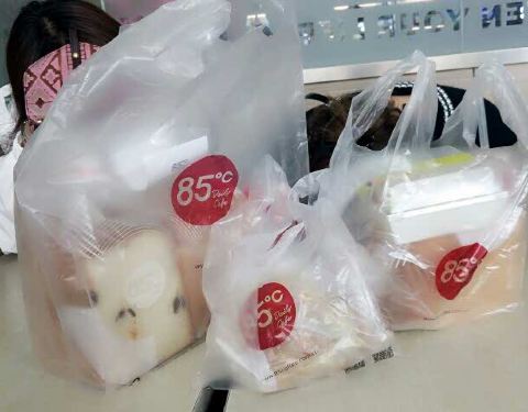 辽宁路百脑汇一楼的85℃烘焙连锁店店内环境不错,烘焙食品品种齐全,有金枪鱼三明治、毛毛虫面包、肉松面包等等,还有不少品种的咖啡、果汁饮料,霸王杯一颗柠檬茶设计独特,味道不错。