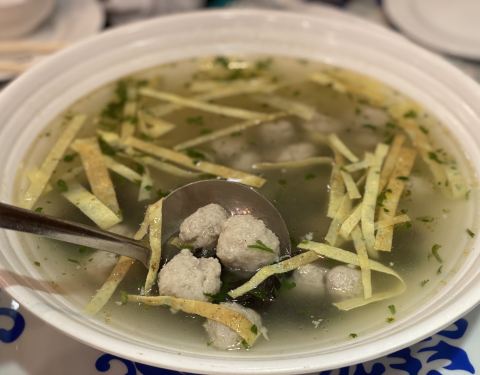 ...鱼丸子汤里的韭菜按我们要求换成了香菜 味道很好 结账的时候主动给我们提供了停车券 是满意的一餐