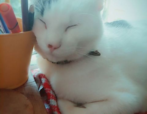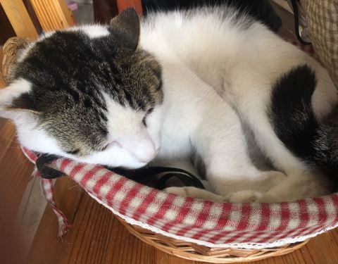 ...店里太舒服啦,二可胖乎乎的,呵呵喜欢躺在架子上,毛线喜欢小筐,有只刚收养的小野猫一直求撸,哈哈