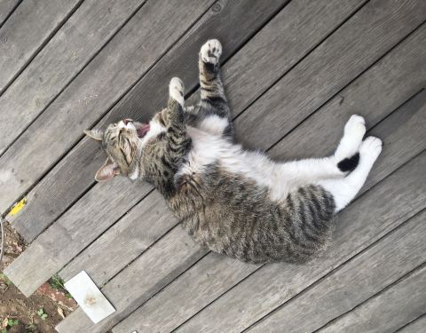 逛完小鱼山公园就过来了,有四只小猫咪,懒洋洋的,好可爱。