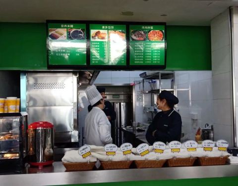 海洋大学这里的第四食堂个人感觉是学校里最好吃的啊,来这里吃饭的学生还是相当多的啊,这里的食堂品种很丰富吧比外面要好吃多了。