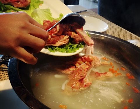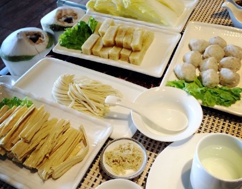 国信体育场里边,只能听导航了,好在停车️还是方便的。 没吃过炒菜,看大家都说还不错。 来吃的是号称岛城第一家#椰子鸡#,顾名思义,整一个椰子的汁水倒入随汤,再倒入鸡肉焖煮,开锅后就能再涮其他菜品啦…… 吃个新鲜还可以啦,就是鸡肉好快烂的,肉食鸡的设定,汤微甜也不是我的口味。 蘸料可以挤金桔汁,以酸调甜。 南方过来️口味么,北方人接受度上可能还需要调整,但是概念还是很好的,突然让我想起了榴莲鸡,可能我还是会选择挑战这种菜品的~~