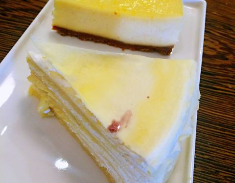 这家店有三层 电梯送餐 座位充足 生意红火 顾客爆满 装修不错 有我喜欢的木质感和冷色调 比较偏韩范儿 当然店里韩国顾客也不在少数 送顾客的超级迷你咖啡豆小蛋糕 造型和口感都是Q弹的 类似香港鸡蛋仔 榴莲千层果肉不少 咖啡有点好喝 聊天环境比较舒适