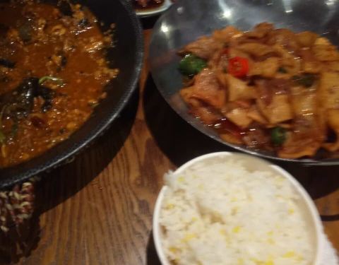 粥和菜的味道都还行,糖醋里脊中规中矩,干锅菜花过于一般,不推荐,炸虾仁还不错,粥也不错。除了粥和炸虾仁,其他菜上的都太慢了。环境也真的是不怎么样,厨房那边也乱哄哄的,还有累的纸箱打翻等等不和谐的声...