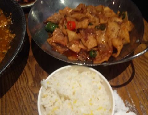 粥和菜的味道都还行,糖醋里脊中规中矩,干锅菜花过于一般,不推荐,炸虾仁还不错,粥也不错
