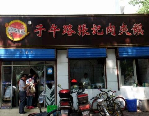 子午路张记肉夹馍店,位于西建大南门东侧约50米处,从子午路搬迁至此。店面不大,有十张左右的小桌,但食客很多,经常需要等座,在当地是超火爆的一家小店。推荐美食:肉夹馍、凉拌米皮、丸子汤、冰峰饮料消费,实惠好吃的一家店。