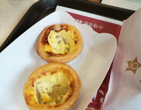 支付宝很方便呢 下午茶走一个哈 蛋挞+柠檬红茶,还送个清至口香糖哈。