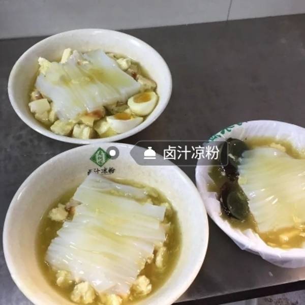 去住处的路上路过这条不太热闹的小巷,在巷口上的这家小店吃饭的人挺多的,于是决定去尝尝。卤汁凉粉11元一碗,一般人都会加个馍,我吃不下就没有要。凉粉做得很快,看师傅剁成条状,加两勺蛋花羹,上面再淋点佐...去住处的路上路过这条不太热闹的小巷,在巷口上的这家小店吃饭的人挺多的,于是决定去尝尝。卤汁凉粉11元一碗,一般人都会加个馍,我吃不下就没有要。凉粉做得很快,看师傅剁成条状,加两勺蛋花羹,上面再淋点佐料。以为加了麻酱会很香,看来我还是高估了,味道一般,没有什么特色,吃了一次不会再来第二次的店。