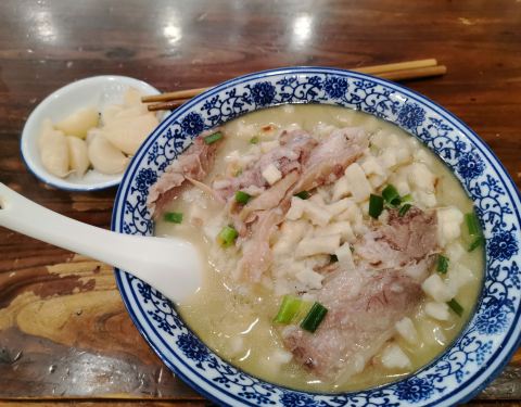 特别是街边小店味道很好,这家楼北楼牛羊肉泡馍就在大差市附近,干净卫生,味道不错,要个普通的加一份糖蒜
