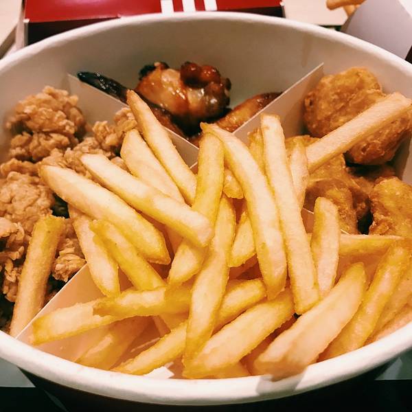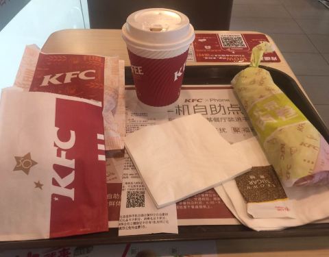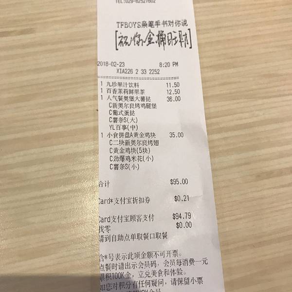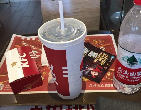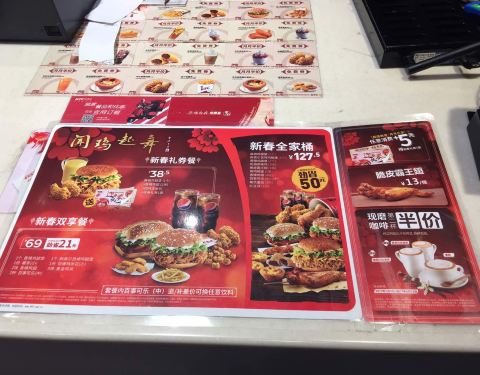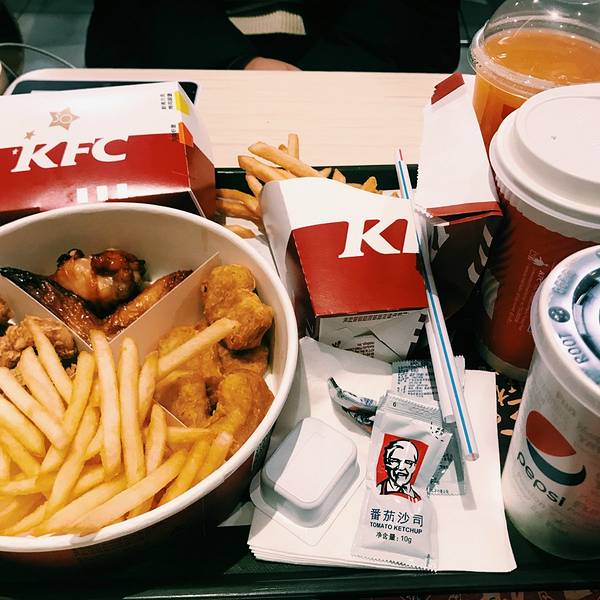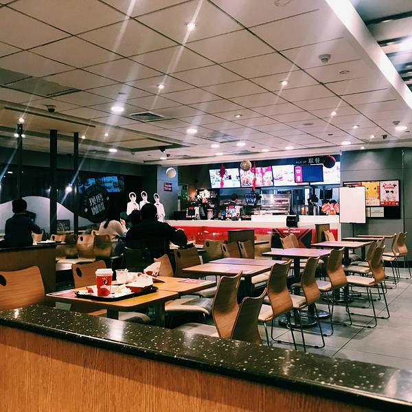 肯德基太华路店,位于西安市新城区太华南路华润万家广场,毗邻华润万家超市的南侧,大华1935艺术区的北侧,乘坐公交车可在附近的建华路站或大华1935站下车,步行5分钟可以抵达。华润万家广场,设有大型的室外停车场,停车费每小时3元,车位充足,前来就餐的客人可以放心停泊。肯德基太华路店面积较大,大厅内干净整洁,LED射灯节能明亮,实用经济。大厅内设有各类座位100多个,一般情况下座位饱和度并不高,比较好找。店内有内门与华润万家超市相连接,方便超市购物的客人前来就餐。店里前台共有两个工作人员帮忙点餐。前台分点餐区和取餐区,但是没什么客人的时候,好像也不需要可以区分。点餐时,工作人员主动询问了就餐人数以及喜好,给出了良好的餐食搭配建议,这在以往点餐时并没有碰到过,感觉十分满意。我们点了新奥尔良烤鸡腿堡套餐,小食拼盘A套餐以及部分饮料,共计消费95元。个人感觉肯德基比起直接竞争对手麦当劳以及德克士等,略显得有点贵。餐配好后,工作人员会根据小票上的编号叫号,然后客人去前台自助领餐,有时候点餐较多一个盘子放不下时,会略有些麻烦。其实人不多的时候,觉得可以直接送餐给客人,服务更周到一些。用餐区的拐角处,有一个小型的儿童乐园,虽然很小但是设施较新,地面上铺着软垫子,安全性还是不错的,需要拖鞋进入,干净卫生。带宝宝的客人就餐,可以把宝宝放在此处略微休息一下。餐食味道还是不错的,新奥尔良烤鸡腿堡是现做的,鸡肉火候把握的不错,口感很好。个人感觉比麦当劳的汉堡吃起来更加嫩滑和可口。