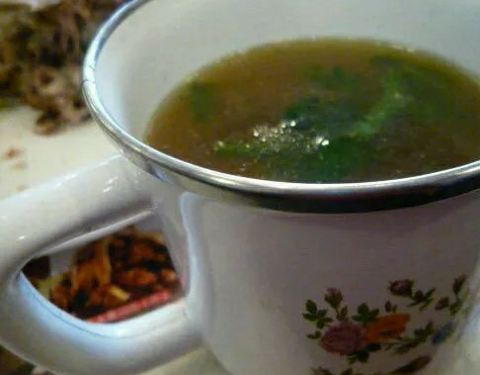 - 其实笔者觉得这个豆腐还是蛮好吃的,不用蘸料也可以。还有一个汤!放在洋瓷缸子里,怀旧