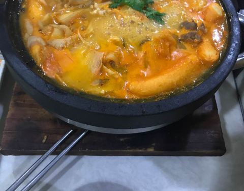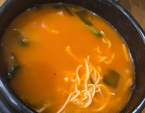 - 辣白菜辛拉面,经典的韩国味道,他们家的面很劲道,里面小料很够味。至尊辣白菜锅,最喜欢他们家这款