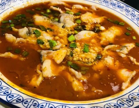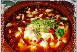 - ...很大一盆,鱼片吃起来很新鲜,香香辣辣的,特别喜欢花椒的香味,配菜海带,酸萝卜,油渣小白菜很清爽