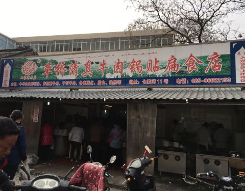 七家湾这一带过去是回民聚居区,所以牛羊肉店铺很多,虽然大规模拆迁了,还留着一些店铺。南京大部分牛肉锅贴店都会冠以七家湾的名头。 草桥扁食店曾在舌尖二里出过镜,这无疑是最好的宣传。 环境就苍蝇馆子,服...七家湾这一带过去是回民聚居区,所以牛羊肉店铺很多,虽然大规模拆迁了,还留着一些店铺。南京大部分牛肉锅贴店都会冠以七家湾的名头。 草桥扁食店曾在舌尖二里出过镜,这无疑是最好的宣传。 环境就苍蝇馆子,服务也是靠自己。所幸食物还可以,比较特色的是牛肉煎包。熏牛肉也不错,比较酥烂。 点了一碗牛肚面,味道还行吧。