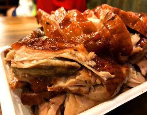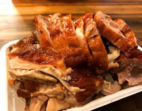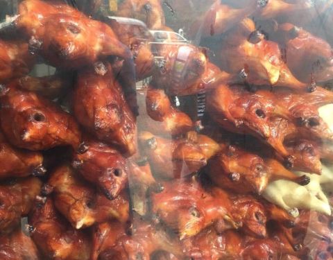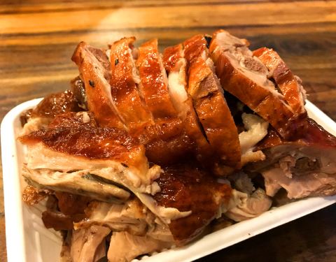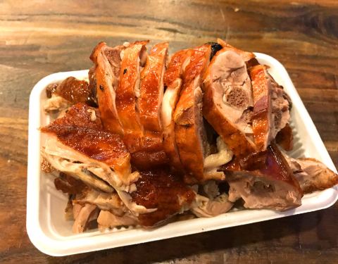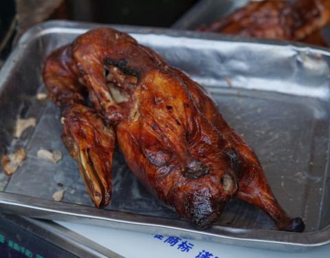 排队来买鸭子的人很多。这里最好吃的就是烤鸭,烤鸭关键就是烤鸭卤,热乎乎的烤鸭上浇上卤汁,渗透入鸭肉中很有滋味,味道偏甜点。