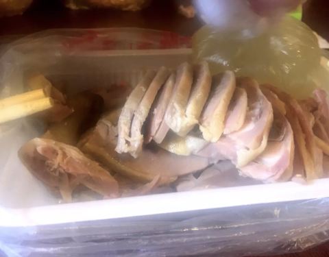 到老门东玩除了尝尝刚出锅的小吃,还可以打包带走当地的美食,徐家鸭子之前不太了解。老爹看到了想尝尝南京当地特色盐水鸭,就买了,一开始只买了四分之一,后来又去买了一整只。单独吃鸭子,口感清淡,盐味隐约尝出,新鲜不失嚼劲的鸭肉,来一口小酒就更棒后来又浇了汁水,咸度上升,但也没盖掉鲜度,鲜咸都有!吃起来太过瘾