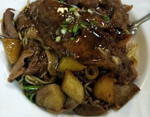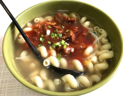 说起来也是南京一家比较老牌的澳门餐厅,看店铺资料是2006年就开业了喔,老板是正宗澳门大厨,因为娶了南京女子故落户在南京,当年还上了报纸的副刊呢。却真的是第一次才看到这家店铺,而且我们还不是奔着它去的,但是一看到它的店铺门面和装修,我们就立刻决定改道在它家吃了,盖因整间店铺看起来真的还蛮土的,土到像极了澳门街头的那些小店铺,就喜欢这种香港和澳门很多街头餐厅都会有的典型小市街气质。 落座之后看菜单,果然是很地道的港澳式菜牌,而且价格很可爱厚道。点了捞面、滑鸡套餐、土司,还有蔬菜和当日特选,吃下来觉得老板的手艺还是传承的不错的,几个菜都很有澳门特色,其中最好的是当是这道蔬菜,嫩脆适度,火候掌握的非常好。。比较遗憾的是鸳鸯太甜,奶味又不足,完全不及港澳水平。也不能怪伙计,用的咖啡冲调机,他也无力回天。 总体来说,对这家澳门轩还是相当满意的,口味不仅基本保持了澳门水准,而且性价比也很高。推荐。