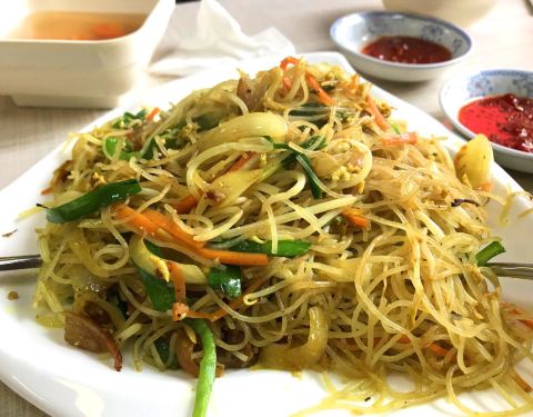 在狮子桥的小巷子里,开了很多年了,之前住在附近都没 马来喳喳,很好吃啊,淡淡的甜味,适合冬天,吃得暖暖的。干炒牛河,鱼蛋,也不错