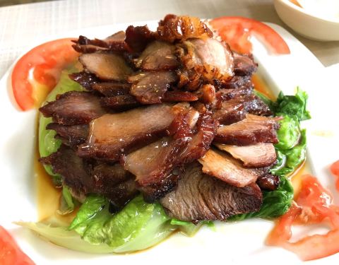 这次选这家一是名气好,二是从来没有尝过,好奇宝宝来尝尝。这样的小店能吃到正宗的澳门菜也是不错的,中午时间人不多。 星洲炒米粉-21:色泽比较好看,米粉略硬但不显干,盘底无油,配菜清爽,总体炒的还是不错的。 澳门秘制叉烧-38:因为对猪肉比较敏感,所以味道有一点不好我都能吃出来,这个叉烧卤的不错,但选材真的很不好,色泽偏暗,混浊的味道很重,我个人不是很喜欢。 西柠煎软鸭-36:做法很不错,酥嫩的鸭肉配上调制的柠檬酱汁,略微带些酸味,很解油腻。缺点是鸭肉没处理干净有轻微骚味,柠檬酱汁调制时不知道添加了什么,有一点很奇怪的味道,不够清爽。 五香牛腩通心粉-19:这道面食不知道为什么总觉得哪里不对,总之牛腩是牛腩,通心粉是通心粉,两者完全不融合,而且口感很奇怪,混在一起吃很是不对味,呵呵,有些让人迷茫的感觉。 总结:店员都很和气,服务也不错,上菜的速度很快,来吃的能看的出都是些老食客,但实在吃不出澳门小食的感觉,也没有让人惊艳的地方,不知道是不是没选对菜,随便吃吃吧。只是希望老板注重食材的品质,新鲜的好食材才能做出最好的味道。