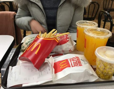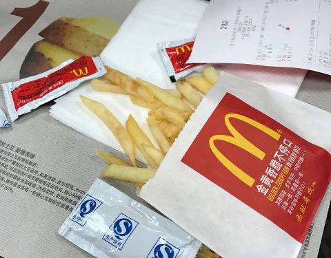 炎热的南京,怎能没有一杯冰冰凉凉的饮料呢,雪碧可乐不去冰就是最好的选择,坚定的不能去冰哟,不然一会会就不冰了你喝的欲望都没有了,如果是下午可以再搭配一包薯条或一个甜品派,妥妥的一顿就这样搞定了。