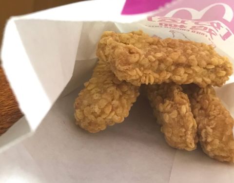 麦乐鸡的口感真的是差到不行,还没有山寨的美满家好吃,真是囧到不行,麦旋风给别人吃了,太甜,回家后吃那…