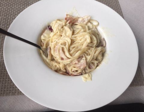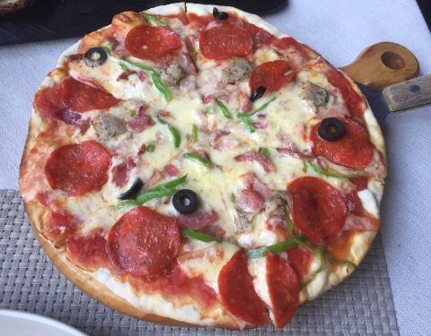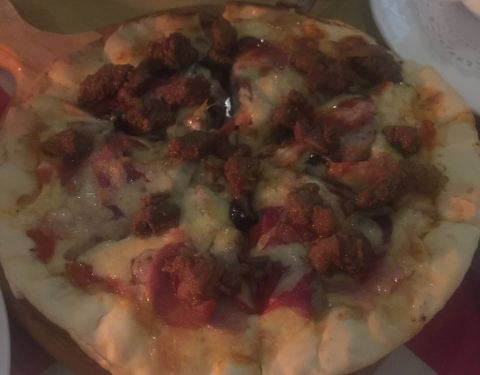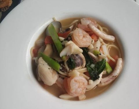 西班牙蒜辣虾,有点小辣,好像有六只虾,下面还有些蘑菇,味道挺赞的,五星推荐。 鸡肉芝士薄饼,薄饼有很多种內馅,牛肉,鸡肉,加芝士,加奶酪,芝士很好吃,味道很棒。 海鲜鱿鱼意大利面,里面海鲜很多,小小的一盘,料还挺足,味道好,比较清淡。