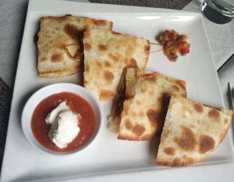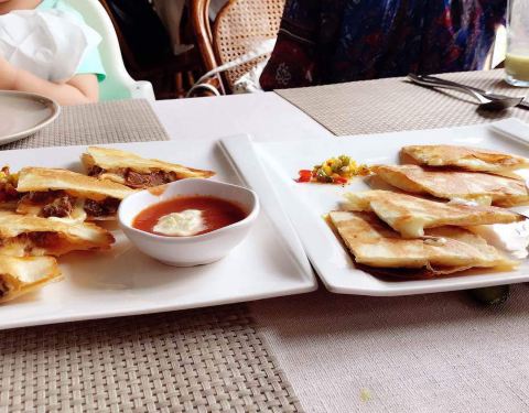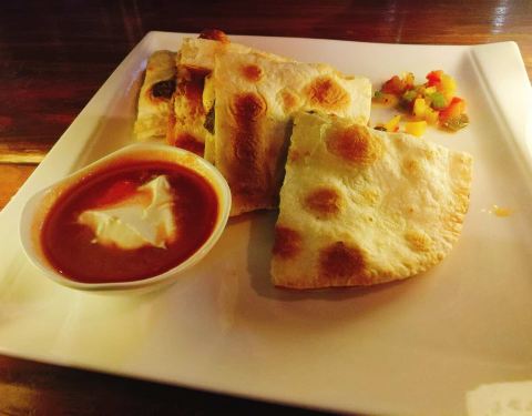 鸡肉芝士薄饼,薄饼有很多种內馅,牛肉,鸡肉,加芝士,加奶酪,芝士很好吃,味道很棒