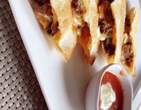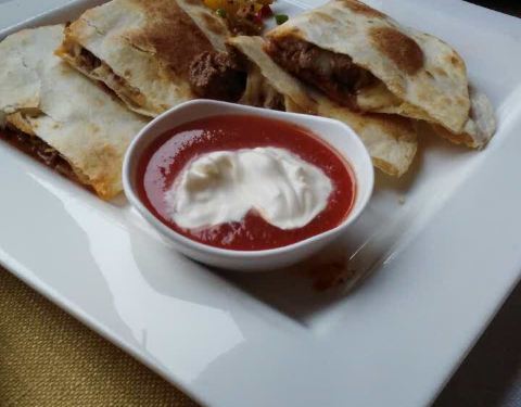 - 鸡肉芝士薄饼,薄饼有很多种內馅,牛肉,鸡肉,加芝士,加奶酪,芝士很好吃,味道很棒