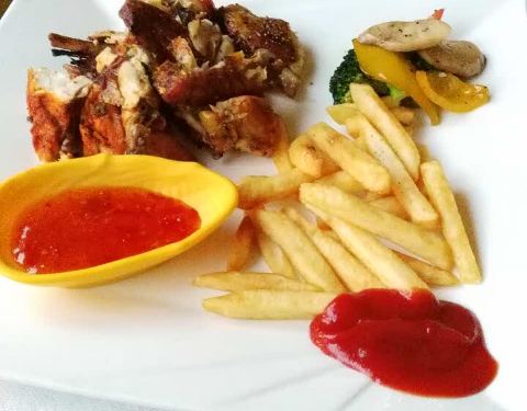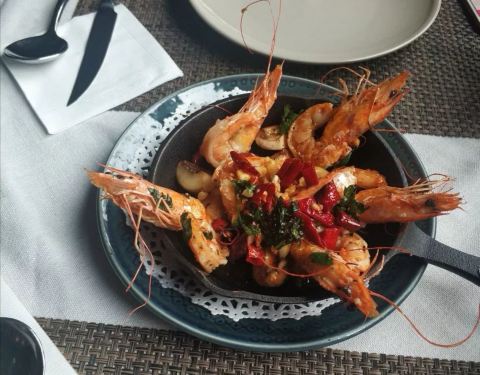 西班牙蒜辣虾,有点小辣,好像有六只虾,下面还有些蘑菇,味道挺赞的,五星推荐。 鸡肉芝士薄饼,薄饼有很多种內馅,牛肉,鸡肉,加芝士,加奶酪,芝士很好吃,味道很棒。 海鲜鱿鱼意大利面,里面海鲜很多,小小...西班牙蒜辣虾,有点小辣,好像有六只虾,下面还有些蘑菇,味道挺赞的,五星推荐。 鸡肉芝士薄饼,薄饼有很多种內馅,牛肉,鸡肉,加芝士,加奶酪,芝士很好吃,味道很棒。 海鲜鱿鱼意大利面,里面海鲜很多,小小的一盘,料还挺足,味道好,比较清淡。