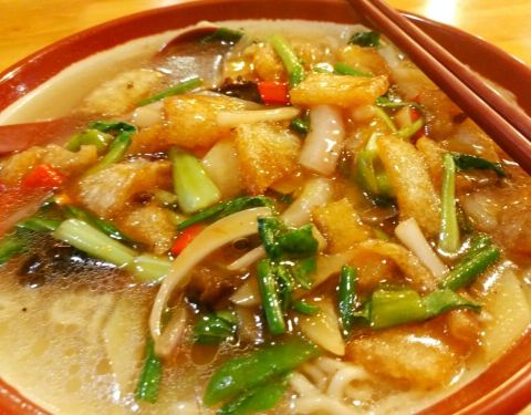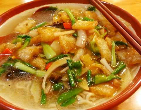 - 汤汁浓厚,浇头丰富,他的盖浇食材为一些时令蔬菜加以主荤,经翻炒出香味,盖在劲道的面条上,味道独特鲜美