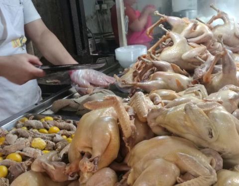 南京市民赶清凉早市,将美食带回家。一早起来去往早市街道 鸡鸭鱼肉 人群涌动 喊价还价声不绝于耳 熟食店前排起了长龙 食品鲜美