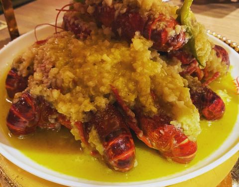 味道很好,辣味没那么辣,辣的口感比较复合,层次丰富「蒜泥龙虾」非常好吃,蒜泥有特殊的香味,不辣...