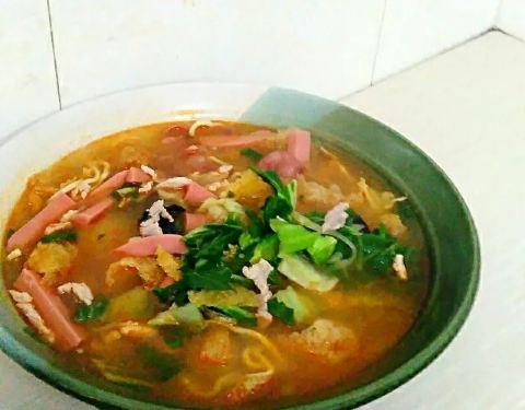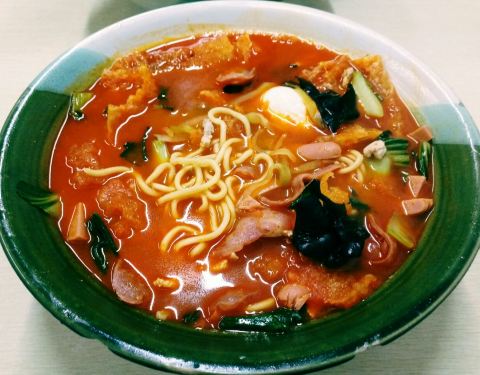 店不大,但一直有客人进来,面有点偏硬,不加辣感觉比较好吃。点了个微辣和不辣的,微辣加了火腿肠。很大一份,2个女生吃一碗都够,不明白为什么进来每个人点一碗都能吃完,我两还剩很多,大概是面太硬不太合我们口味吧。