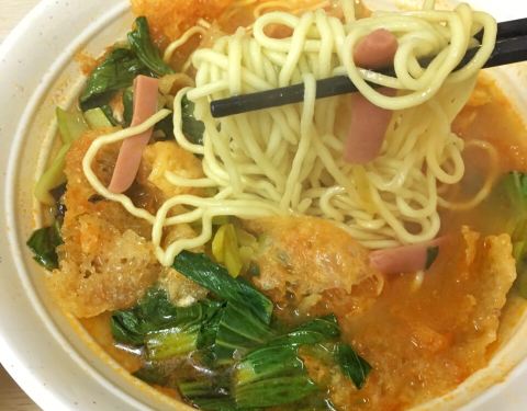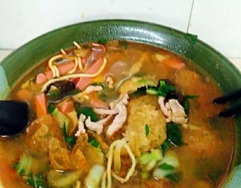 店不大,但一直有客人进来,面有点偏硬,不加辣感觉比较好吃。点了个微辣和不辣的,微辣加了火腿肠。很大一份,2个女生吃一碗都够,不明白为什么进来每个人点一碗都能吃完,我两还剩很多,大概是面太硬不太合我们...