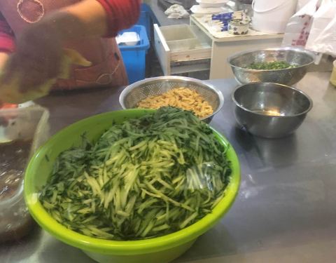 - 一碗碗凉皮拌着飞快,很快就到我们了,还是按照惯常的那样,点了特色凉皮+鱼香鸡蛋的组合,口感依然蛮好的