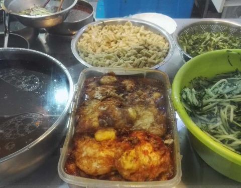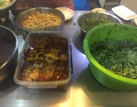 宝鸡张记凉皮可以说是南京玄武区四牌楼的一家“苍蝇小馆”。这家小馆是相当受欢迎的,这次过来时,想着学校(附近有南师附小、东南大学)放假了,门口在修路(进店要从踏板上过去),顾客应该不多,没想到到的小店里,依然是排着蛮长的队,好在店员操作得很快,一碗碗凉皮拌着飞快,很快就到我们了,还是按照惯常的那样,点了特色凉皮+鱼香鸡蛋的组合,口感依然蛮好的。