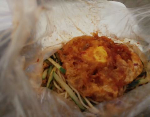 一碗碗凉皮拌着飞快,很快就到我们了,还是按照惯常的那样,点了特色凉皮+鱼香鸡蛋的组合,口感依然蛮好的